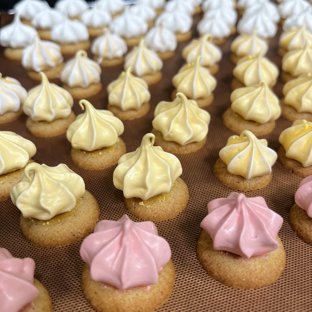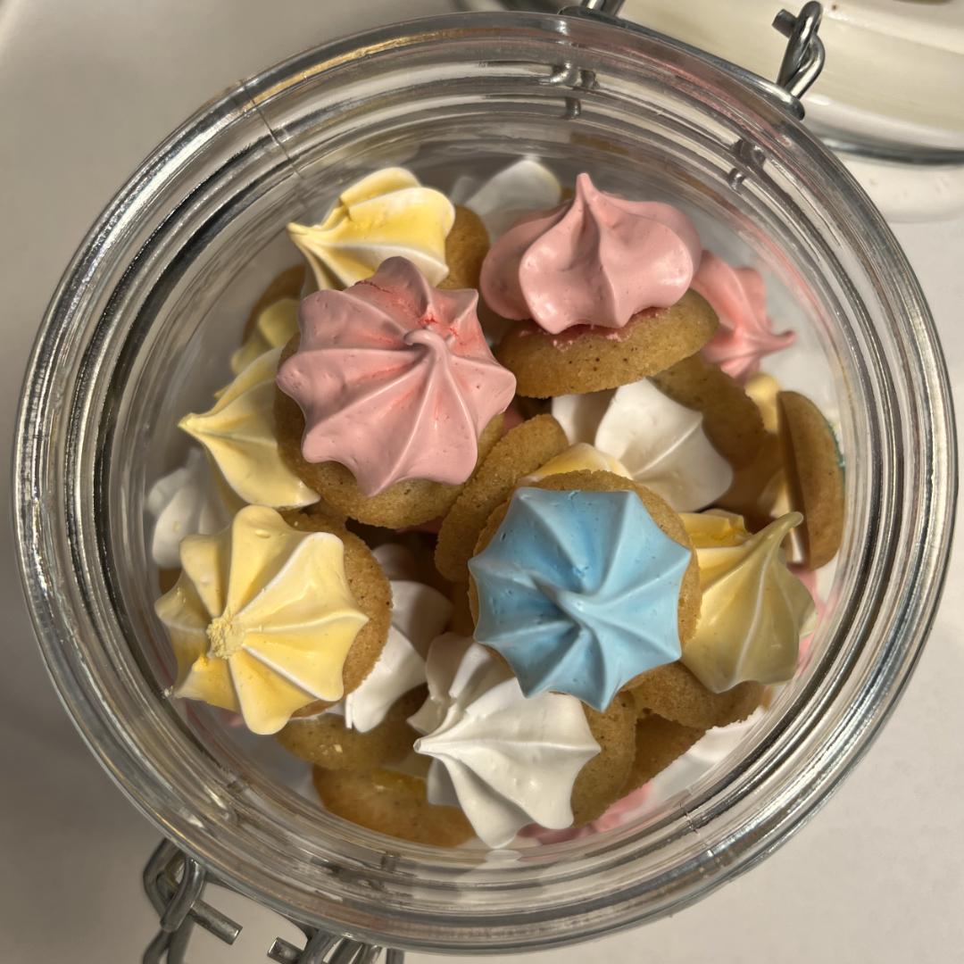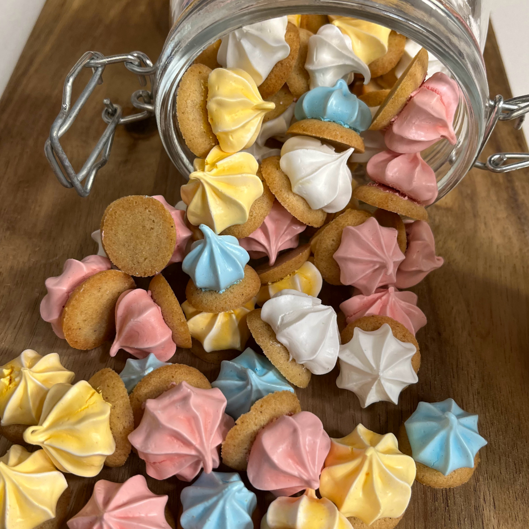 Os Beijinhos são um pequeno biscoito, composto por uma bolacha de formato redondo, com um merengue ou suspiro colorido como cobertura. São pequenos em tamanho, mas muito crocantes e há-os de todas as cores.