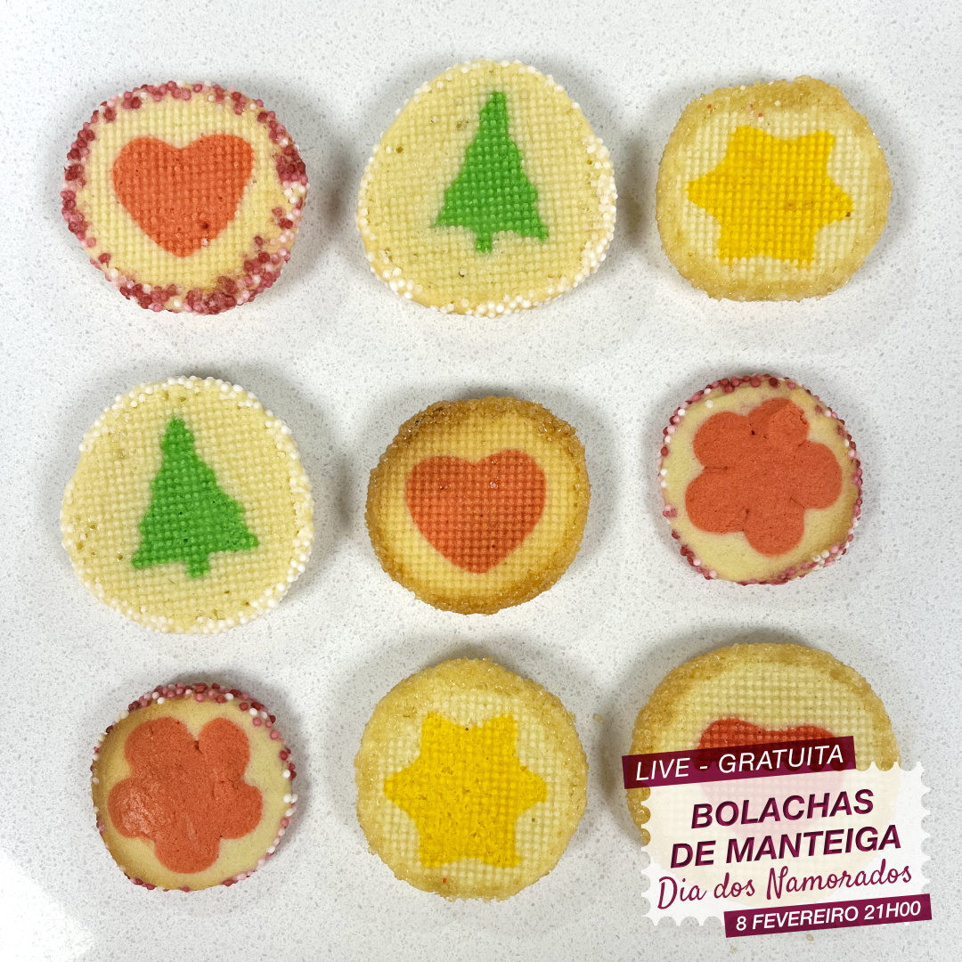 Nesta Live Gratuita, podes acompanhar a Sónia na realização de bolachas de manteiga com desenhos embutidos.