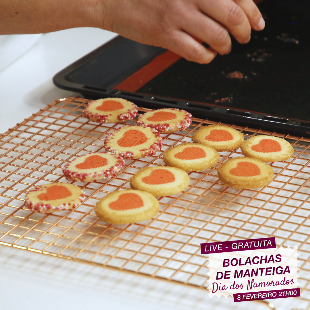 No dia 8 de fevereiro pelas 21h, partilhamos a nossa famosa receita de bolachas de manteiga, desta vez num formato mega romântico ou não estivesse o dia de São Valentim mesmo a chegar!